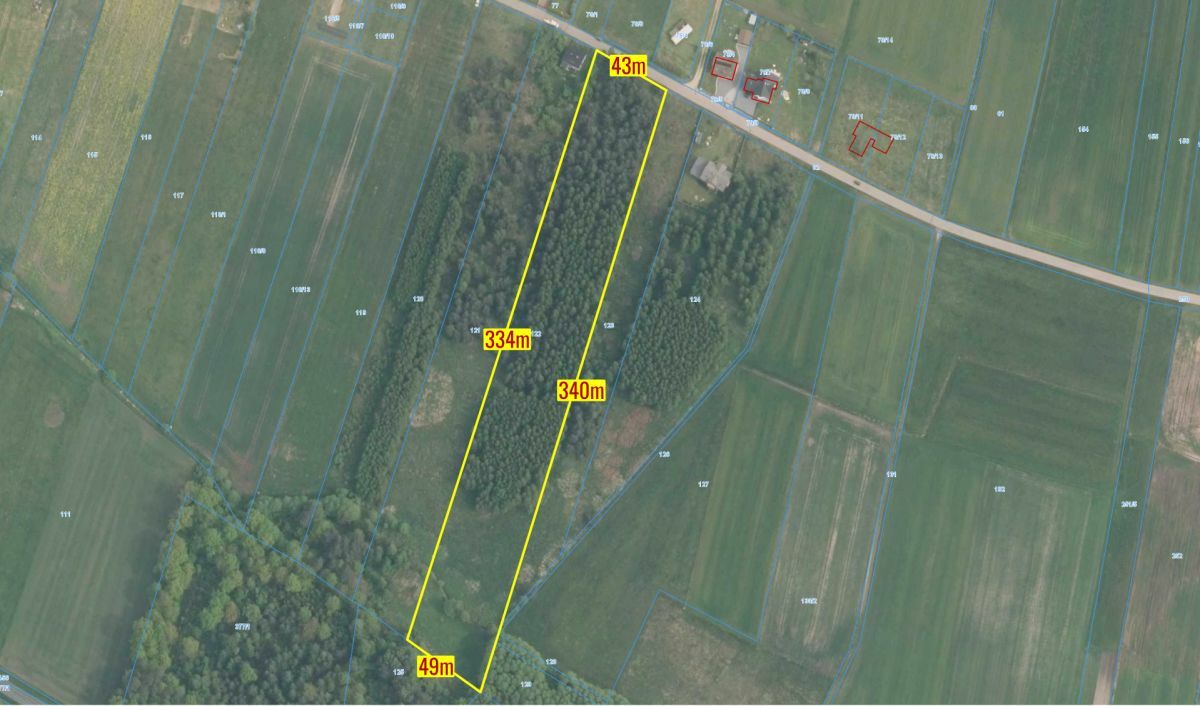 Wymiary 43 metry szerokości od drogi, długość 330